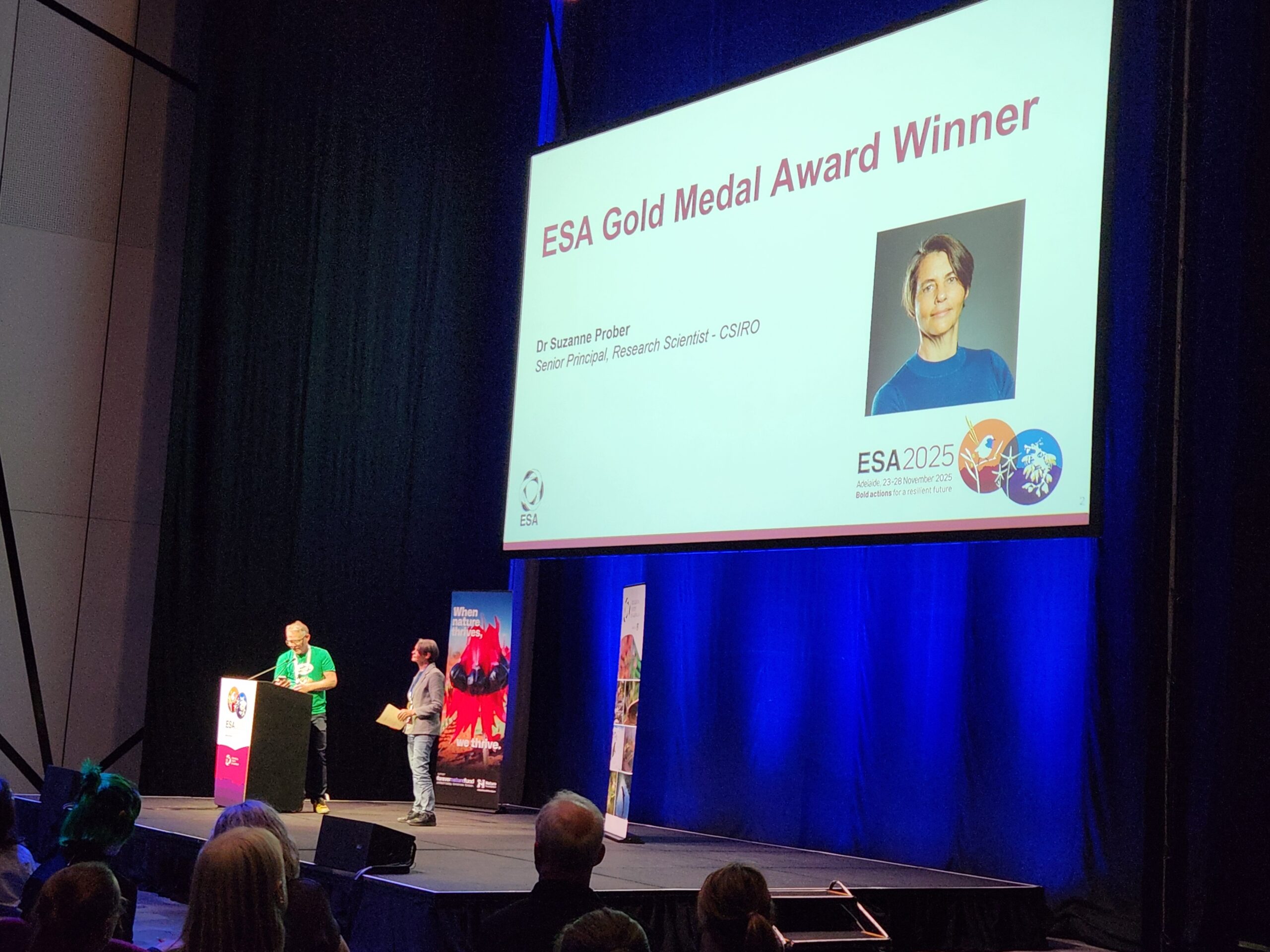 But before I dive into conference highlights, I have some wonderful news to share. I’m absolutely delighted that Dr Suzanne Prober has been awarded the Ecological Society of Australia’s Gold Medal – and it couldn’t be more deserved! Suzanne has been with TERN since almost day one, leading our Great Western Woodlands SuperSite and making invaluable contributions to our understanding of this extraordinary landscape. More recently, she’s been driving the development of TERN’s National Ecosystem Assessment System for Australia (NEASA), work that will fundamentally transform how we assess and monitor the health of our ecosystems. Suzanne’s dedication, scientific excellence, and collaborative spirit embody the very best of our community. Congratulations, Suzanne – we’re immensely proud!