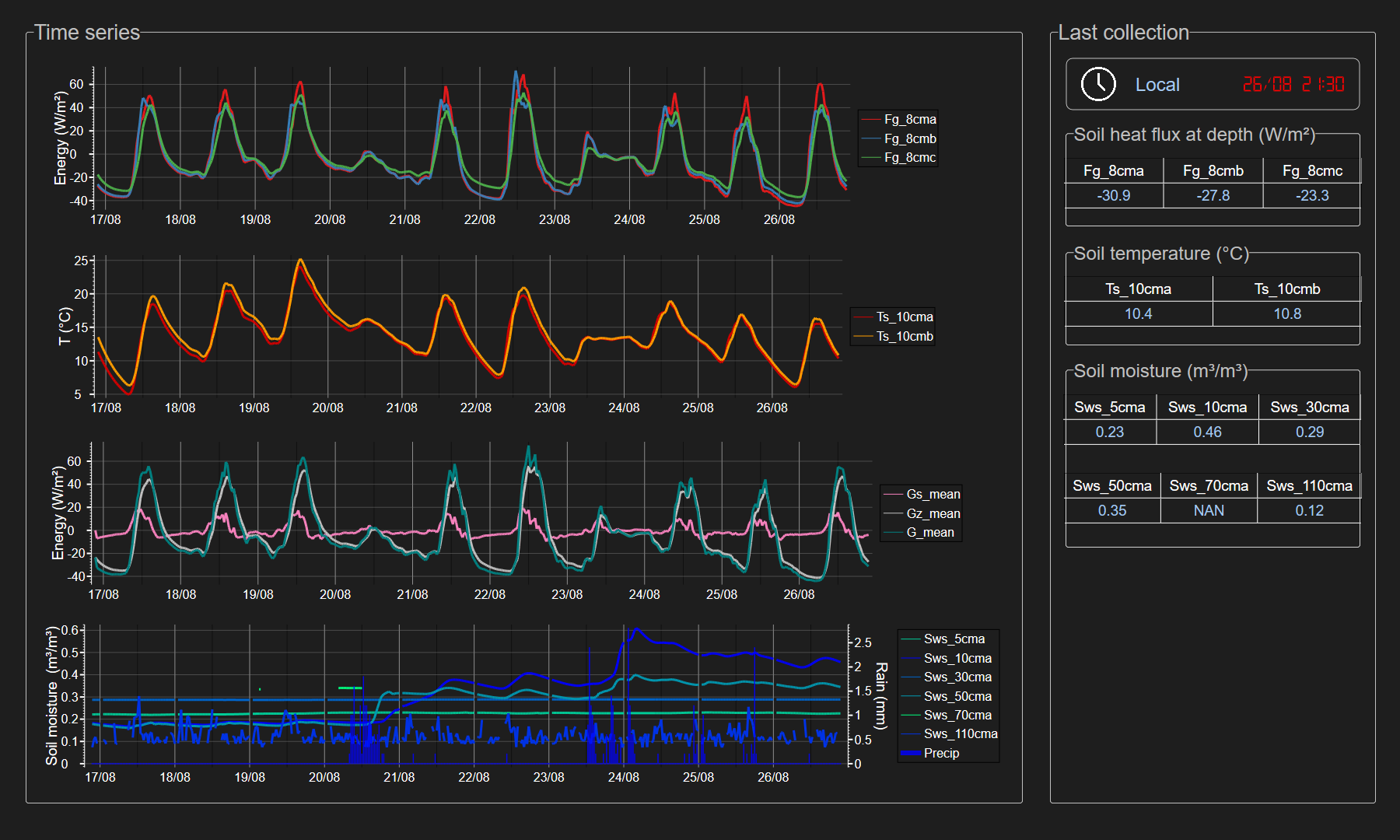 - Soil water content and temperature sensors