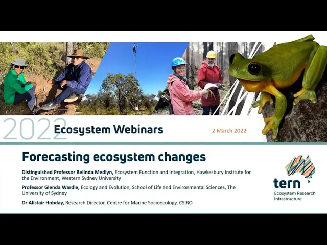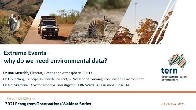 TERN is proud to host regular webinars which bring our research community together. Our bi-monthly webinar series ‘Ecosystem Observations’ is held on the first Wednesday of every second month and attracts up to 500 participants per session.
